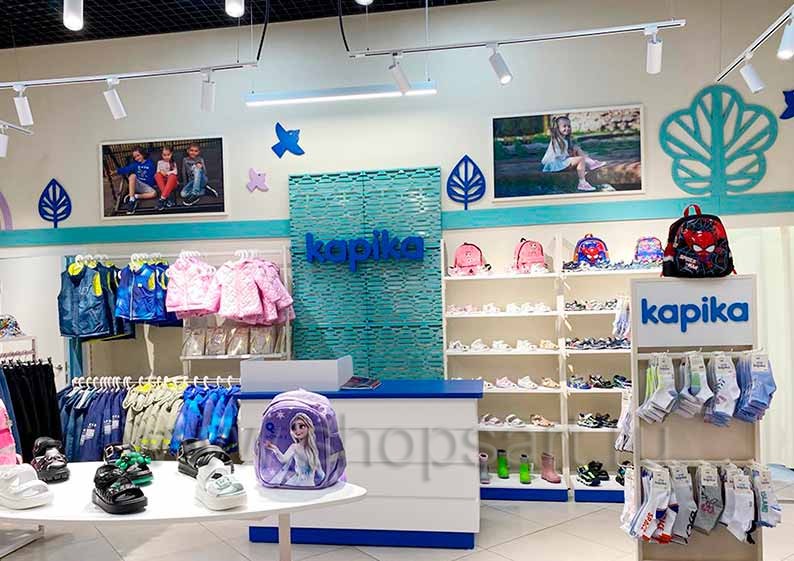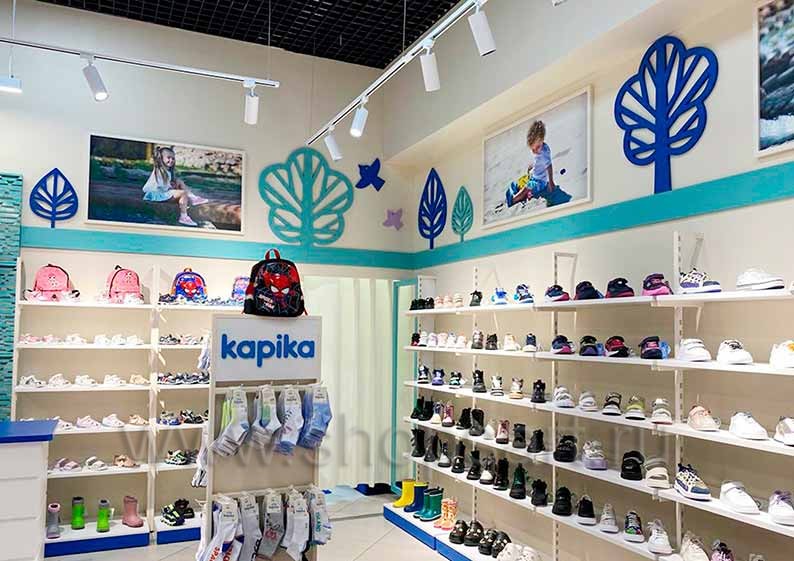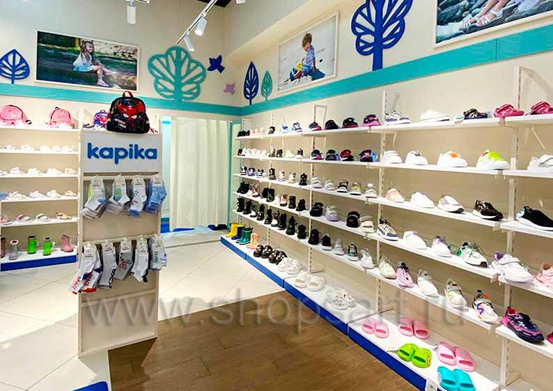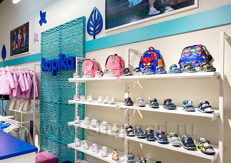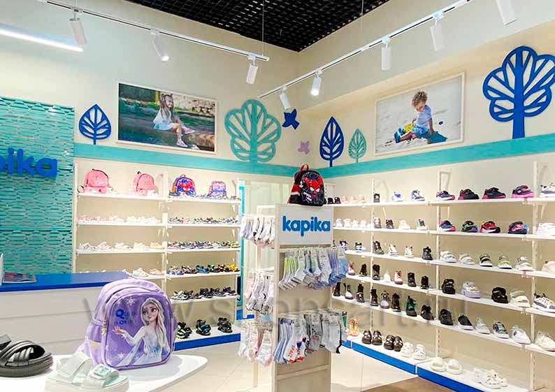 На этой странице Вы можете ознакомиться с фотографиями торгового оборудования в открытом сетевом детском магазине обуви «Kapika», находящемся в ТРЦ “Весна”, город Москва, Алтуфьевское шоссе, 1-й километр, вл3с1, на основе коллекции торговой мебели «РАДУГА». Поставила оборудование для магазина: торговые стеллажи, пристенные стеллажи, торговые острова, торговые стойки и другое оборудование для обуви компания «Искусство интерьеров». Узнать больше о наших коллекциях мебели для детских магазинов Вы можете на странице детского торгового оборудования.