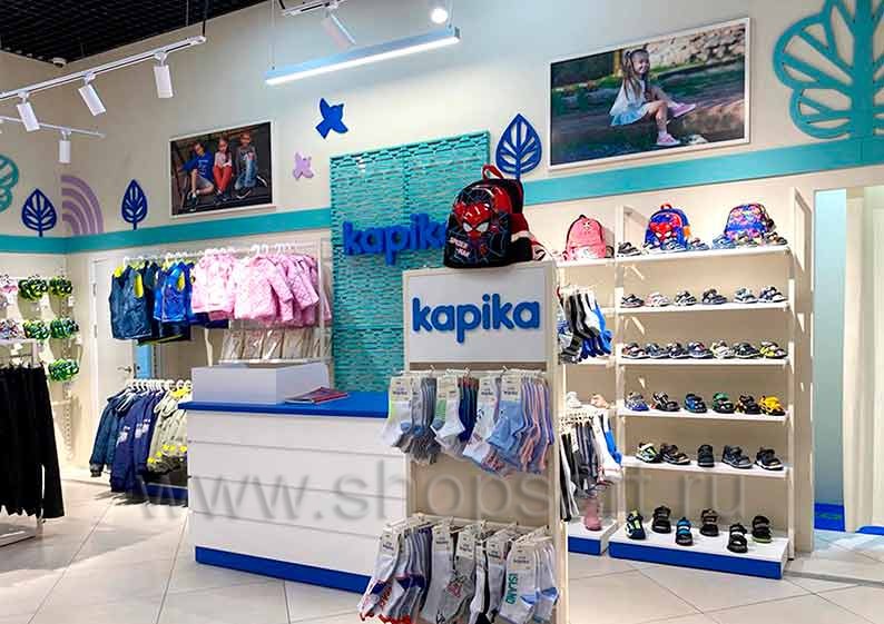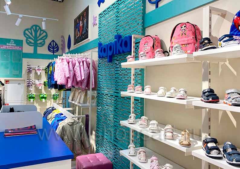 Дизайн интерьера сетевого детского магазина «Kapika», ТРЦ “Columbus”, г. Москва, Кировоградская ул., д. 13А, на основе коллекции торгового оборудования «РАДУГА»