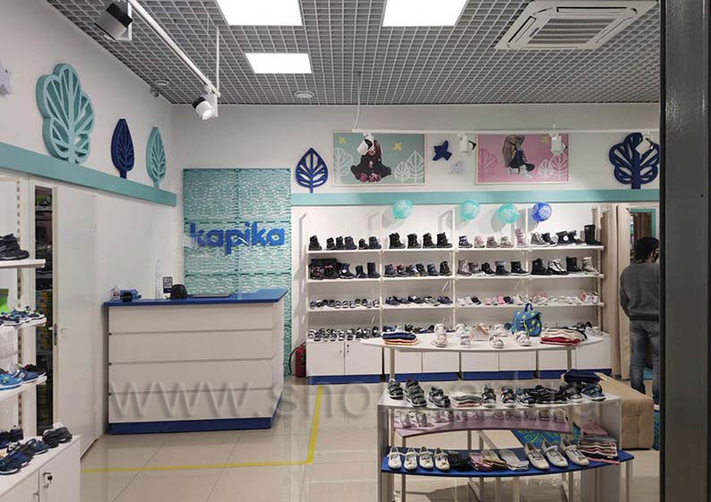 На этой странице Вы можете ознакомиться с фотографиями торгового оборудования в открытом магазине детской обуви «Kapika», находящемся в городе Санкт-Петербург, Брантовская дорога, 3, ТРЦ “Охта Молл”, на основе коллекции торговой мебели «СТИЛЬ ЛОФТ». Поставила оборудование для магазина: витрины для обуви, стеллажи для магазина обуви, острова для магазина обуви и другое оборудование для обуви компания «Искусство интерьеров». Узнать больше о наших коллекциях мебели для магазинов обуви Вы можете на странице торгового оборудования для магазинов обуви.