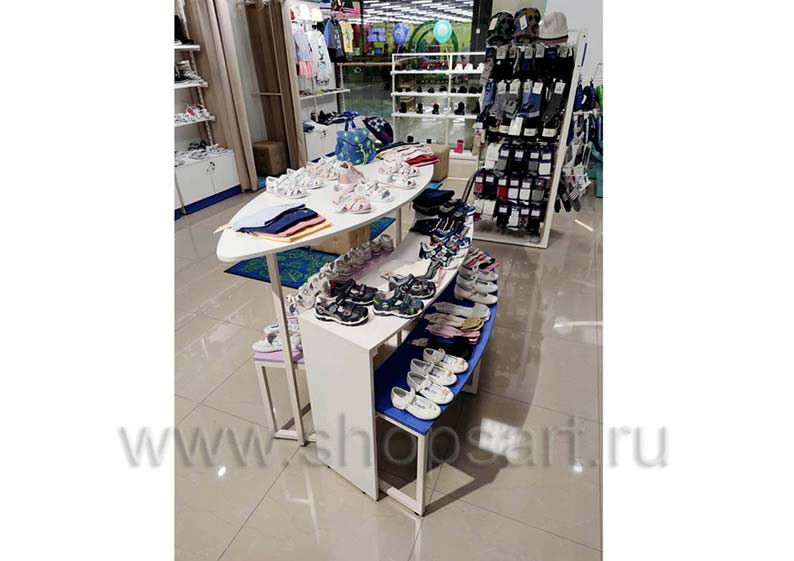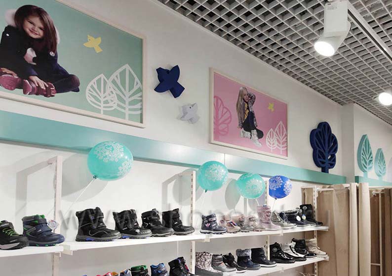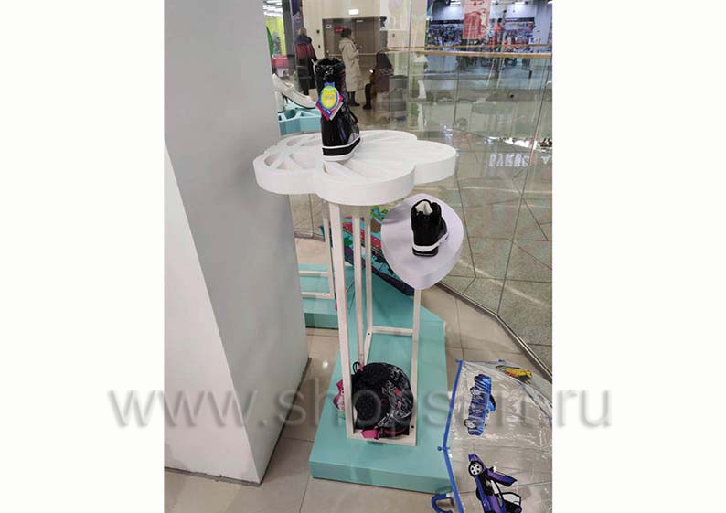 Такое торговое оборудование для обуви практично в использовании. В то же время изделия коллекции являются эффективным средством развития бизнеса, ведь они предназначены для демонстрации товаров в магазинах детской обуви. С этой торговой мебелью вы сможете красиво, со вкусом разместить детскую обувь.