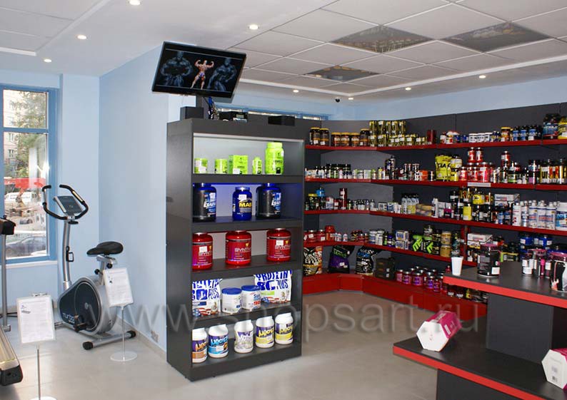 На этой странице Вы можете ознакомиться с фотографиями торгового оборудования в открытом магазине спортивной еды и спорттоваров “Sportsman”, находящемся в городе Химки, Московской области, ул. Калинина 7, на основе коллекции торгового оборудования «ТОРГОВЫЕ СТЕЛЛАЖИ». Разработала и поставила торговую мебель: торговые стеллажи, стеллажи металлические пристенные, усиленные стеллажи и другую торговую мебель компания «Искусство интерьеров». Узнать больше о наших коллекциях мебели для магазинов Вы можете на странице торгового оборудования для магазинов и бизнеса.