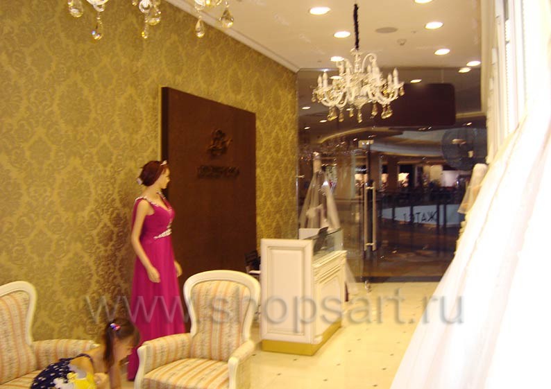 Дизайн интерьера свадебного салона «LUXURY NOVA», ТРЦ «Афимолл Сити», на основе коллекции торгового оборудования «ЭЛИТ ГОЛД»