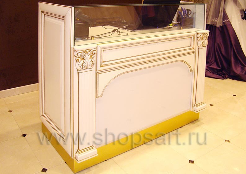 - Витрины и прилавки. Эти прозрачные конструкции из стекла удобно использовать для размещения свадебных украшений и аксессуаров.