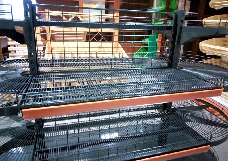 Одна из наших коллекций называется «Сетчатые стеллажи». Конструкции данной серии применяются для размещения продукции повышенного спроса. Как правило, их устанавливают неподалеку от кассовой зоны. Таким образом владельцы магазинов привлекают внимание посетителей к размещенным в них товарам.