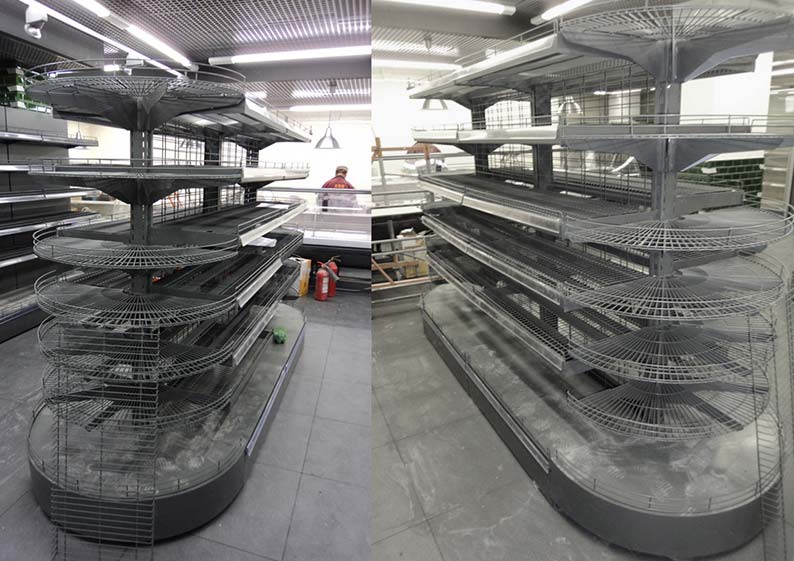 На этой странице Вы можете ознакомиться с фотографиями торгового оборудования в открытых магазинах Москвы, Московской области и России на основе коллекции торгового оборудования «СЕТЧАТЫЕ СТЕЛЛАЖИ». Разработала и поставила торговую мебель: торговые стеллажи, овальные стеллажи, пристенные стеллажи и другое оборудование для магазинов компания «Искусство интерьеров». Узнать больше о наших коллекциях мебели для магазинов Вы можете на странице торгового оборудования для магазинов и бизнеса.