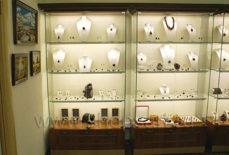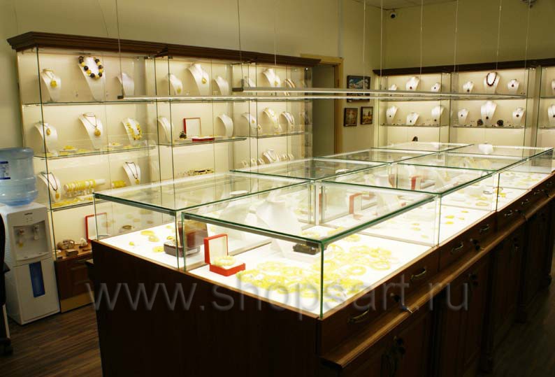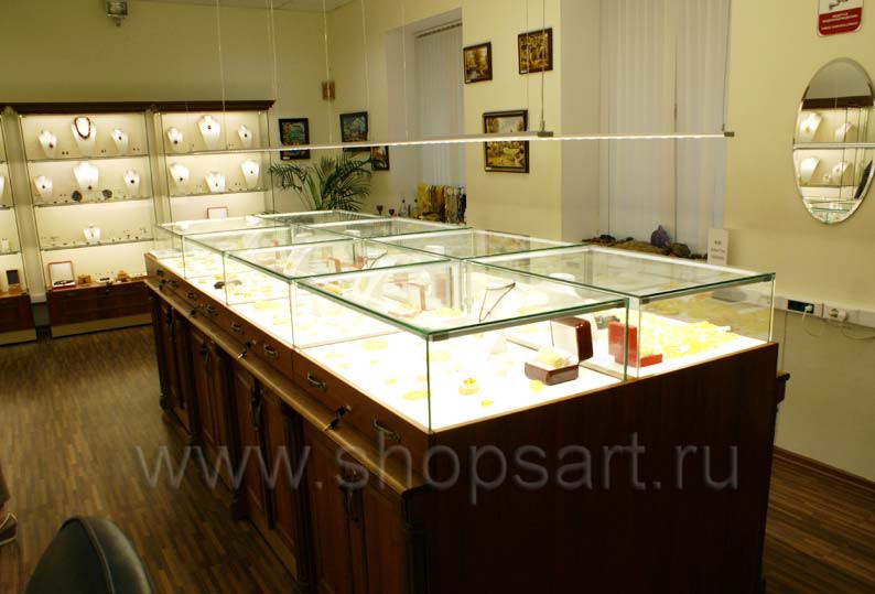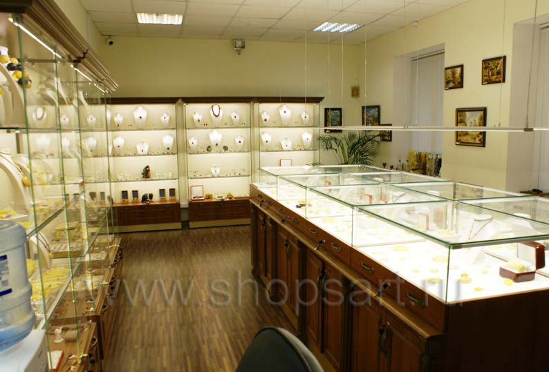 На этой странице Вы можете ознакомиться с фотографиями торгового оборудования в открытом ювелирном магазине янтаря ТД «Амбер», находящемся в городе Москве, улице Зои и Александра Космодемьянских. Ювелирные витрины, ювелирные прилавки и другое оборудование для ювелирного магазина, на основе коллекции «КОРИЧНЕВАЯ КЛАССИКА», поставила компания «Искусство интерьеров». Дизайн торгового оборудования, торговой мебели и оборудование для ювелирных изделий были разработаны для продажи ювелирных изделий из янтаря, российского производства, экскурсионным группам из Китайской Народной Республики. Узнать больше о наших коллекциях мебели для магазинов Вы можете на странице торгового оборудования для ювелирных магазинов.