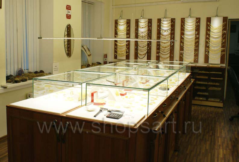 Фотографии торгового оборудования в открытом ювелирном магазине “Октябрь”, г. Москва, Фрунзенская наб., коллекция «КОРИЧНЕВАЯ КЛАССИКА»
