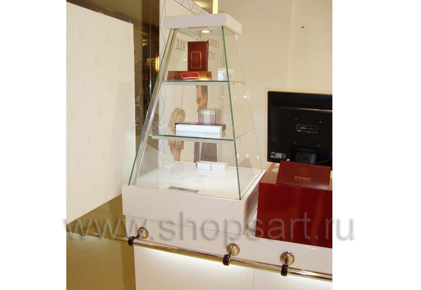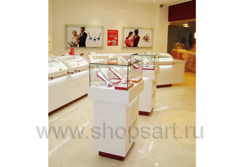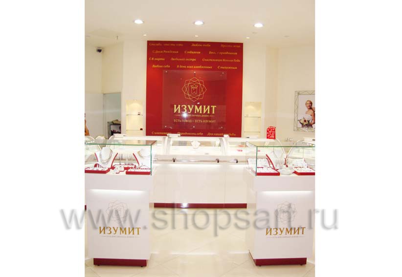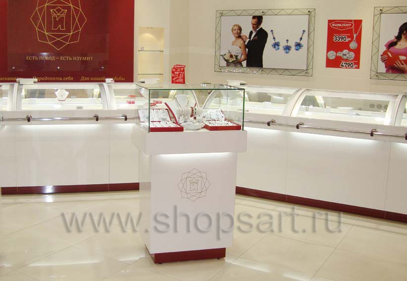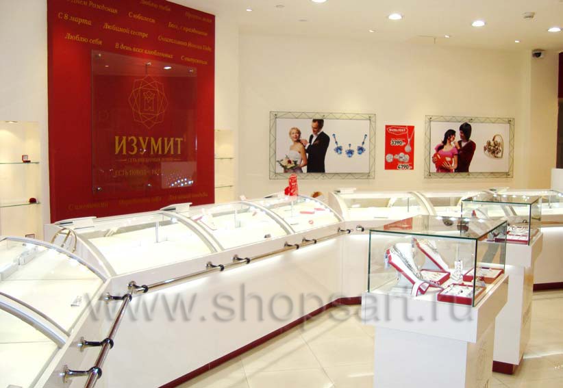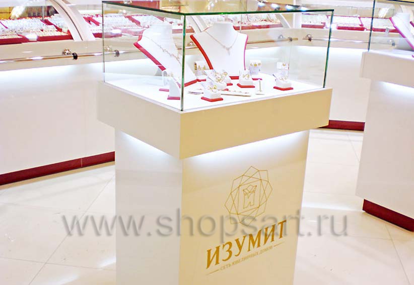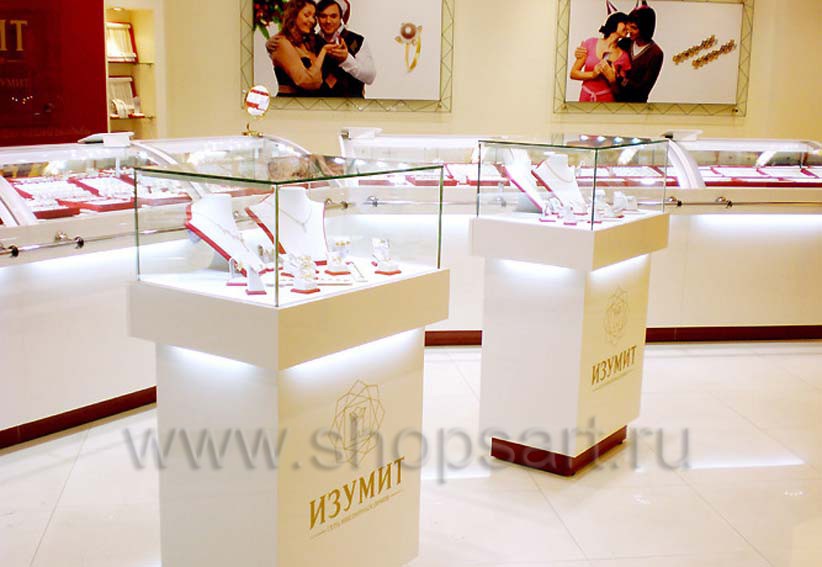На этой странице Вы можете ознакомиться с фотографиями торгового оборудования в открытом ювелирном магазине «Изумит», находящемся в ТЦ “Конкорд-Маркет”, город Москва, улица Шаболовка. Торговую мебель: ювелирные витрины, витрины стеклянные кубы, ювелирные прилавки и ювелирные горки для магазина, на основе коллекции «ЭТАЛОН», поставила компания «Искусство интерьеров». Узнать больше о наших коллекциях мебели для магазинов Вы можете на странице торгового оборудования для ювелирных магазинов.