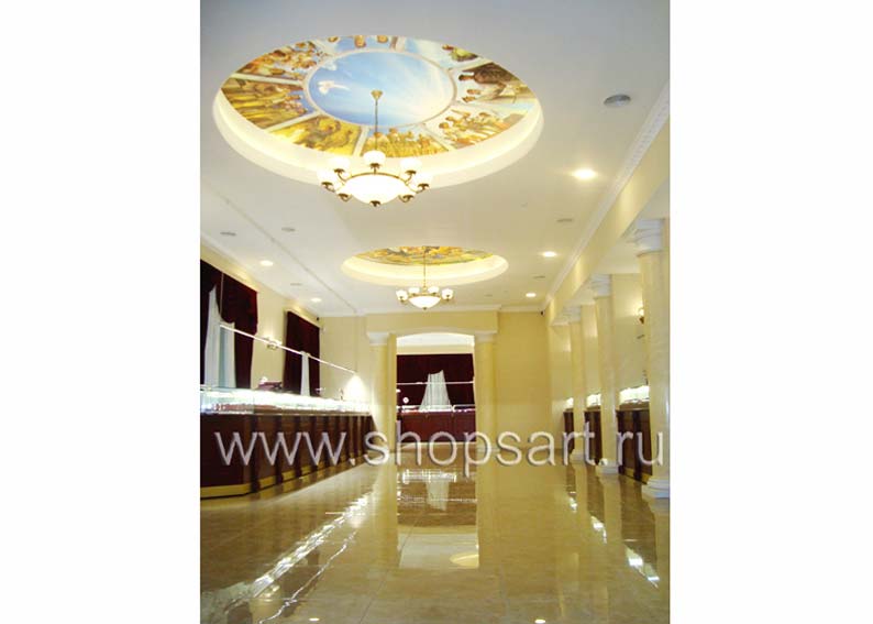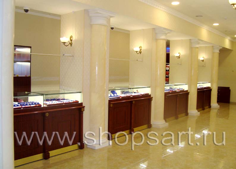 Компания «Искусство интерьеров» разработала торговую мебель для ювелирного салона. Салон создавался для клиентов из Китая, которые приезжают в Москву. За основу была взята коллекция мебели Коричневая классика. Был разработан новый комплект мебели: витрины, демонстрационные кубы, шкафы с секциями-нишами, прилавки.