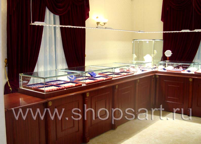 Фотографии торгового оборудования в открытых ювелирных магазинах на основе коллекции КОРИЧНЕВАЯ КЛАССИКА