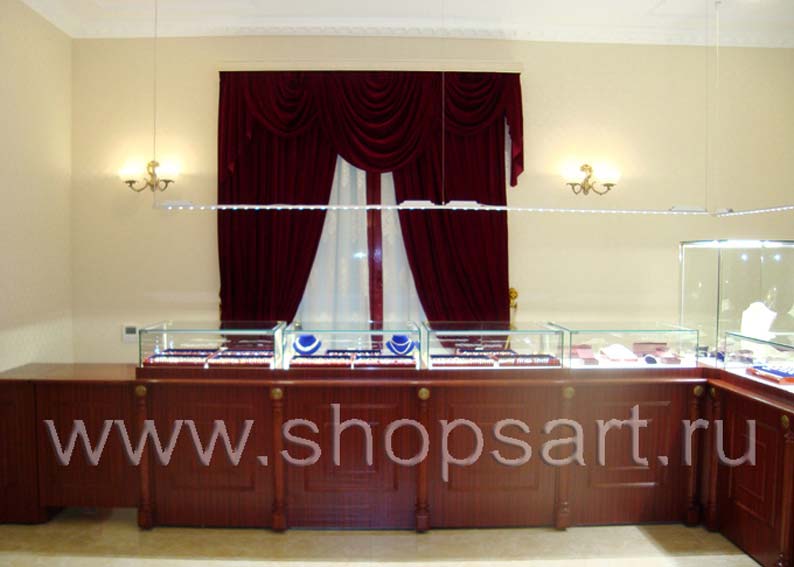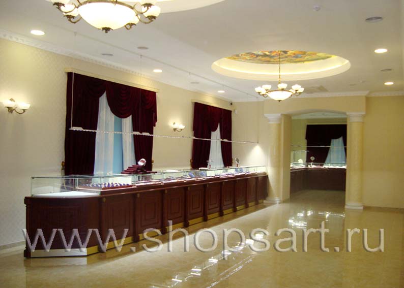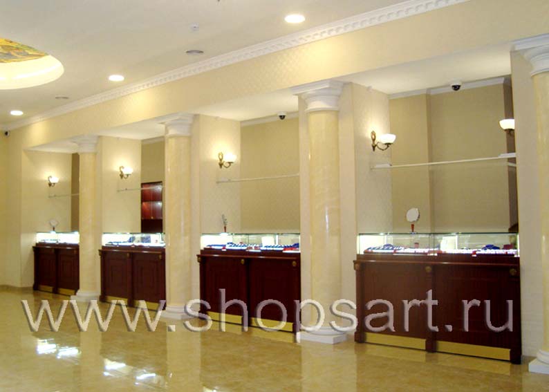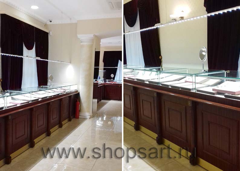 Торговое оборудование «КОРИЧНЕВАЯ КЛАССИКА» поставленное в ювелирный магазин «Октябрь», Фрунзенская наб.
