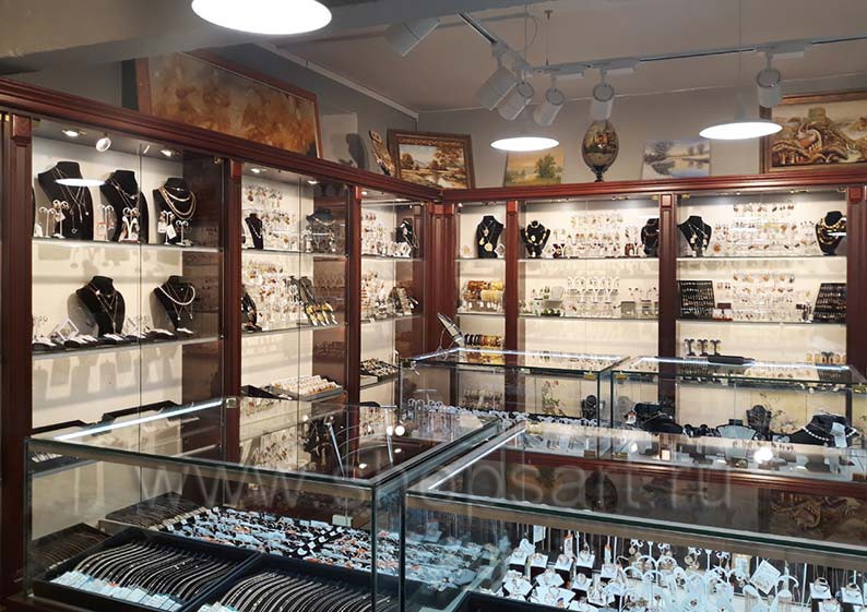 Фотографии торгового оборудования в открытом ювелирном магазине “Октябрь”, г. Москва, Фрунзенская наб., коллекция «КОРИЧНЕВАЯ КЛАССИКА»