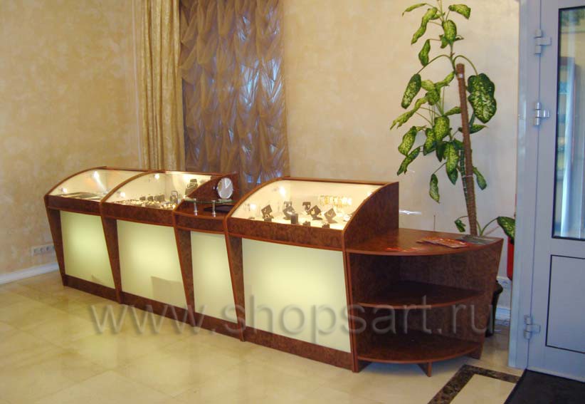 На этой странице Вы можете ознакомиться с фотографиями торгового оборудования в открытом ювелирном магазине-ломбарде часов и украшений «Тик-Так», находящемся в городе Москве, Комсомольский проспект. Торговую мебель: ювелирные витрины, ювелирные прилавки и ювелирные шкафы для магазина, на основе коллекции «ЭТАЛОН», поставила компания «Искусство интерьеров». Узнать больше о наших коллекциях мебели для магазинов Вы можете на странице торгового оборудования для ювелирных магазинов.
