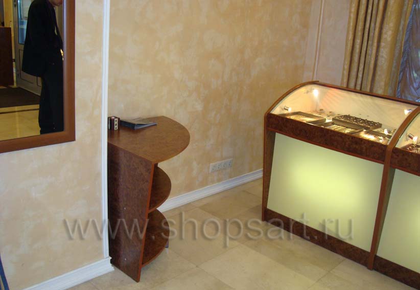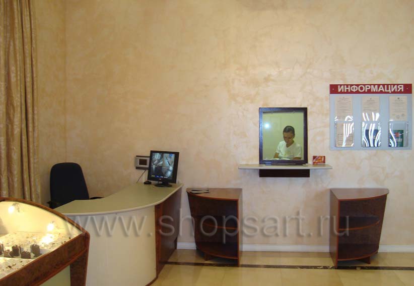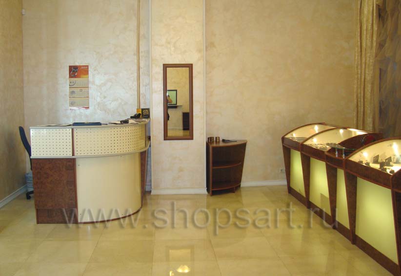 Магазин-ломбард драгоценностей и часов — это практически ювелирный салон. Чтобы произвести на клиентов нужное впечатление, необходимо в деталях продумать дизайн интерьера магазина и разработать линейку мебели. Такой салон ни в коем случае не должен выглядеть дешево.