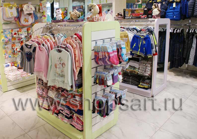 Теперь определимся, что же означает идеальное оснащение в понимании посетителей торгового объекта. Разумеется, это в первую очередь уютный и привлекательный интерьер. Также речь идет о манекенах и другом оборудовании, применяемом для эффективной демонстрации товаров. В тех заведениях, которые предлагают одежду для детей, в перечень необходимой мебели следует включить примерочные кабины и вешала.