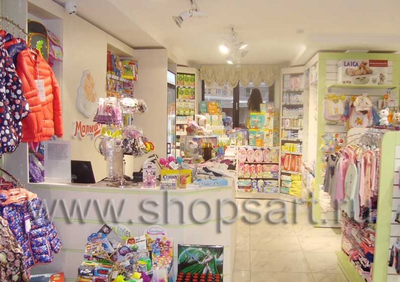 На этой странице Вы можете ознакомиться с фотографиями торгового оборудования в открытом детском магазине «Малышня», находящегося в городе Москве, микрорайон “Царицыно”, 6-я Радиальная улица, дом 3, корпус 9. Торговую мебель для магазина, на основе коллекции «АКВАРЕЛИ», разработала, поставила и установила компания «Искусство интерьеров». Узнать больше о наших коллекциях мебели для детских магазинов Вы можете на странице детской торговой мебели.