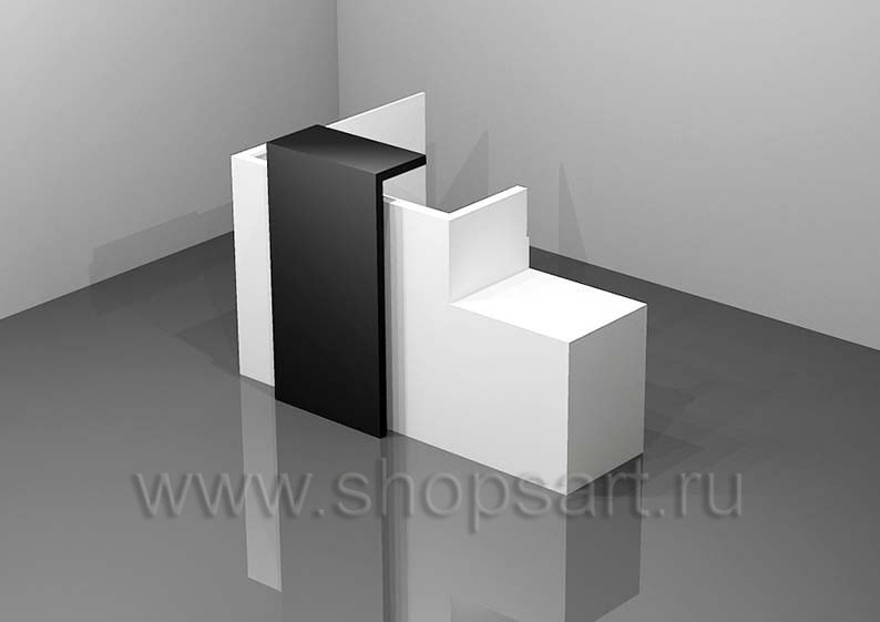 Кассовый стол с тумбой и декоративной накладкой. Тумба может быть использована как зона упаковки. Внутреннее наполнение стола выполняется по желанию Заказчика. Цвет белый, черный, или любой другой.