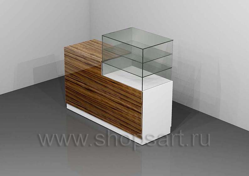 Торговый демонстрационный стол с прилавком, имеющим стеклянный верх. Материал: ЛДСП, массив дерева которое тонируется в любой цвет. Стол отлично подойдет для ювелирных магазинов и магазинов часов.