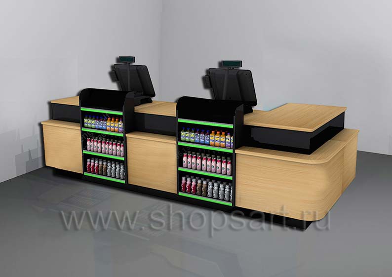 На этой странице Вы можете ознакомиться с образцами кассовых столов, кассовых зон, кассовых узлов, стоек ресепшн, стоек администраторов для магазина и бизнеса. Изготовим торговую мебель по вашим чертежам, размерам и дизайну. В дополнение к кассовым столам произведем и поставим торговое оборудование для вашего магазина. Мебель для магазинов разработала компания “Искусство интерьеров”.