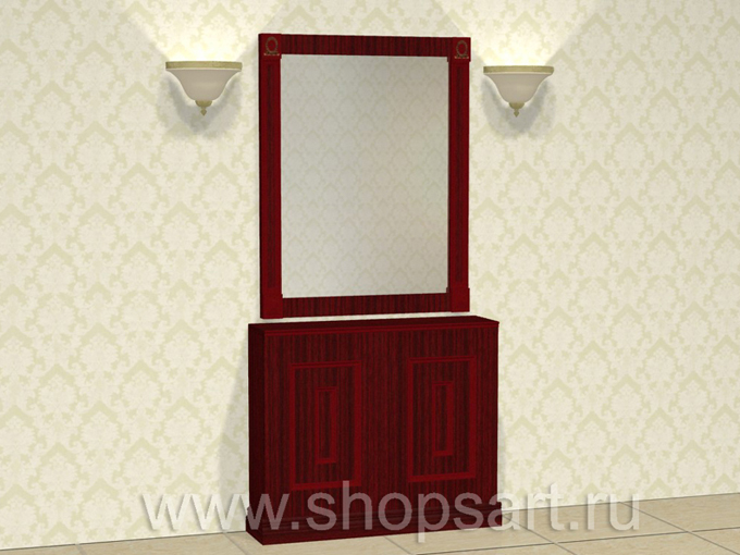 Тумба с зеркалом, изготавливается из ЛДСП, с декоративной раскладкой из массива дуба. Тумба высота — 857мм, ширина 1000мм., глубина 250мм. Зеркало 1150х1000мм.