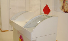 Блок из трёх витрин на подиуме. Размер: 2000х350х1500мм.