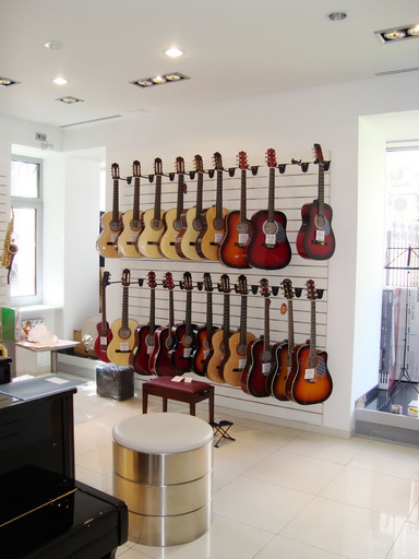 На этой странице Вы можете ознакомиться с фотографиями торгового оборудования в открытом магазине музыкальных инструментов, находящемся в городе Москве. Произвела, поставила и установила в магазине торговую мебель: торговые стеллажи, торговые прилавки, торговые острова, торговые стойки, пристенные стеллажи, торговые шкафы и др. компания ООО «Искусство интерьеров»