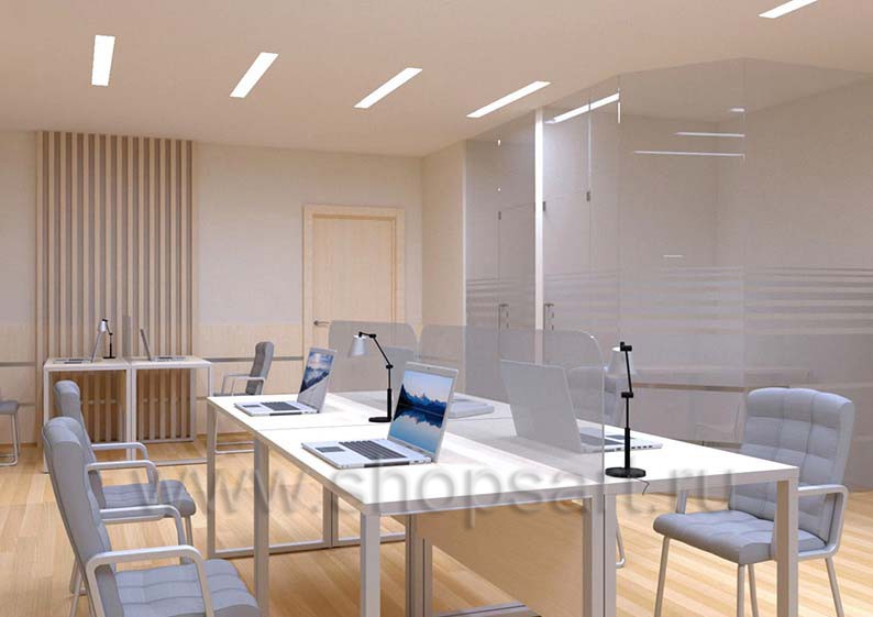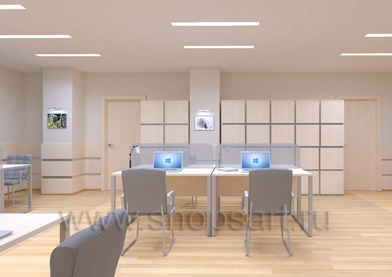 На этой странице Вы можете ознакомиться с дизайном 2 офиса. Мебель для офиса, столы для сотрудников, стол для руководителя, стол для переговоров, шкафы для офиса разработала компания «Искусство интерьеров». Мы можем произвести офисную мебель, по индивидуальному проекту, в необходимом размере, цвете, вашем дизайне, учитывая все ваши пожелания.