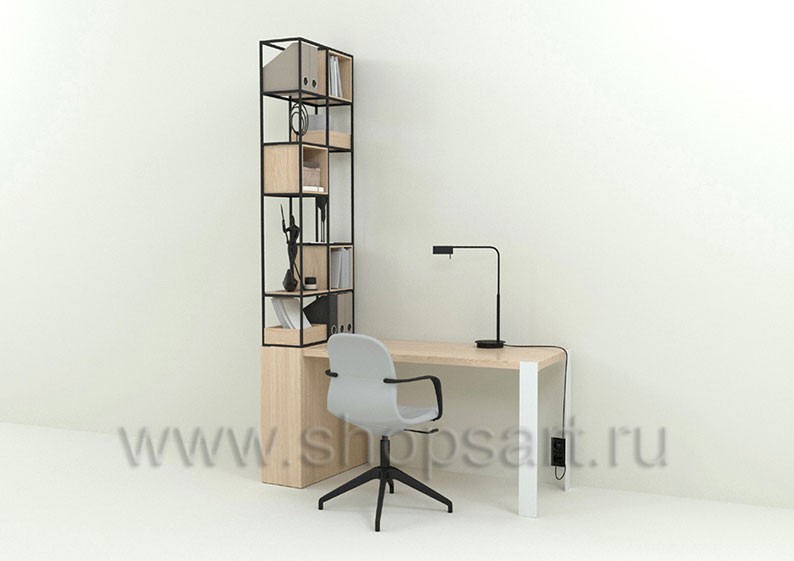Комплект мебели для персонала «Бриз» подойдет для оформления небольшого кабинета или рабочей зоны в офисе. Данная модель мебели состоит из рабочего стола и открытого стеллажа с полочками для хранения документации. Комплект офисной мебели выполнен из матового ЛДСП в цвете натурального дерева с декоративной отделкой. Каркас стеллажа выполнен из металла с покрытием порошковой краской чёрного, матового цвета. Мебель для офиса на заказ может быть выполнена в другом цвете и размерах.