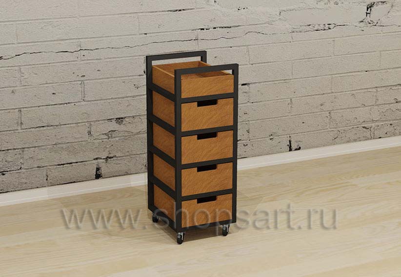 Тумба с выдвижными ящиками для косметики. Тумба с ящиками передвижная, используется для салонов красоты в стиле Лофт. Изготавливается из МАССИВА ДЕРЕВА или ЛДСП.