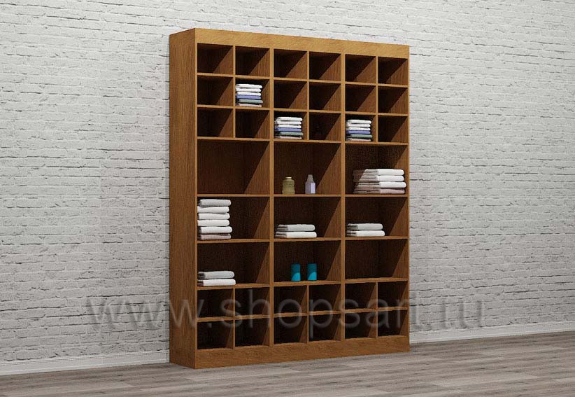 Шкаф в виде открытого стеллажа с ячейками для полотенец, салфеток и простыней. Изготавливается из ЛДСП.