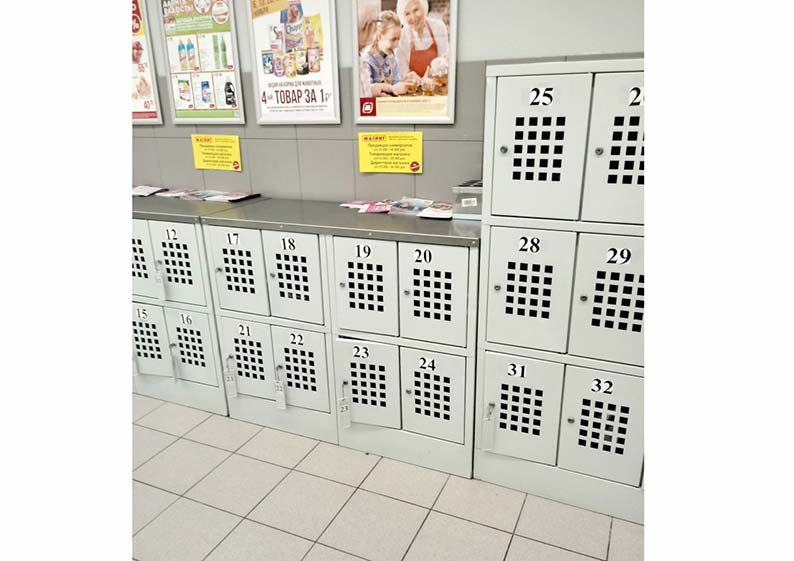 Почему посетителей просят не входить в магазин с сумками? Всё очень просто: именно их покупатели используют для кражи товаров. Для того, чтобы исключить проблемы и недоразумения в данном отношении, во многих современных магазинах установлены ячейки для сумок. Иначе их называют камерами хранения.