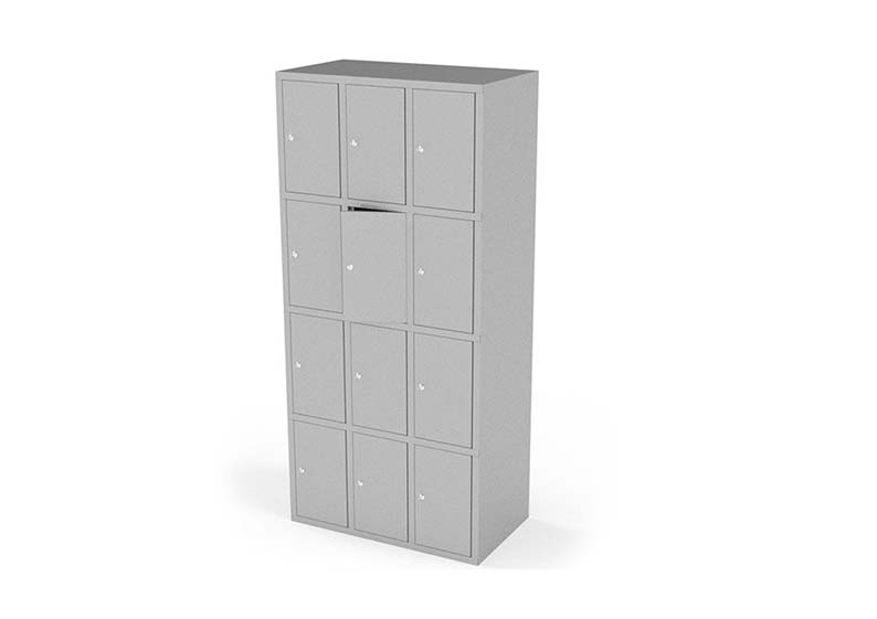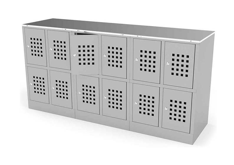 Сумочный шкаф предназначен для хранения сумок и личных вещей покупателей в магазинах. Сварная конструкция выполнена из 12 отделов с перфорированными дверками.