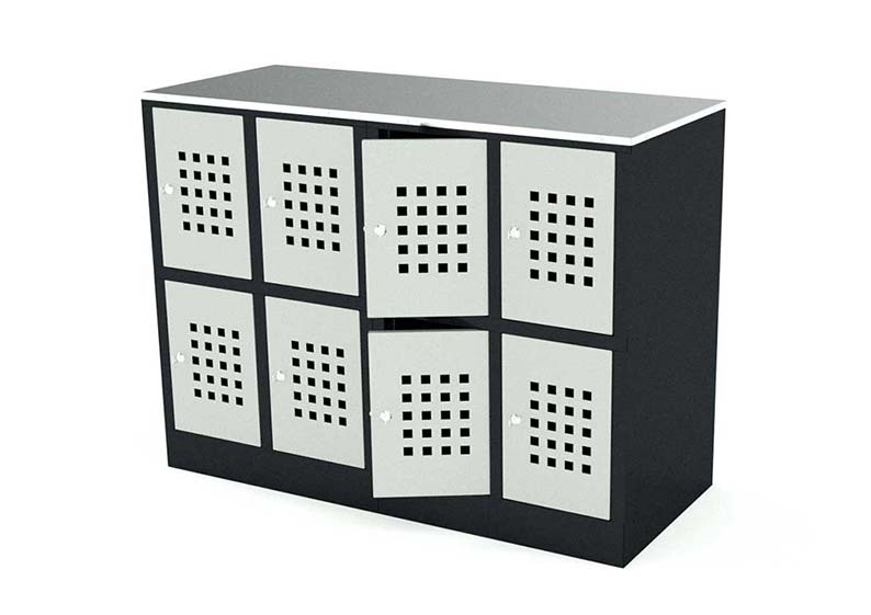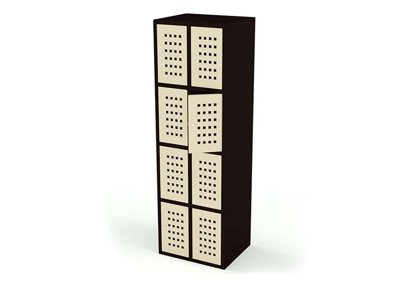 - Наличие отверстий для вентиляции. Они имеются на дверцах ячеек. Такая особенность конструкций не случайна: вентиляционные отверстия предотвращают появление неприятных запахов внутри отсеков.