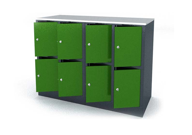 Шкаф для сумок в магазин предназначен для хранения сумок и личных вещей покупателей. Сварная конструкция имеет повышенную прочность, выполнена из 8 отделов со сплошными дверками.