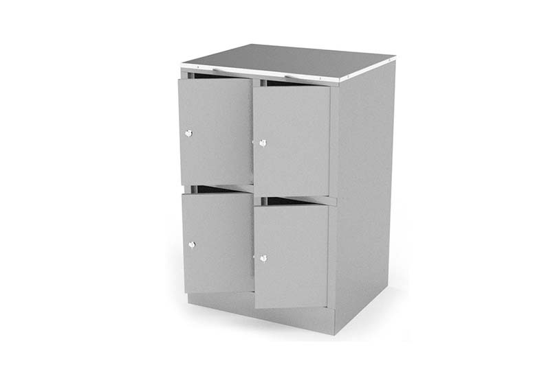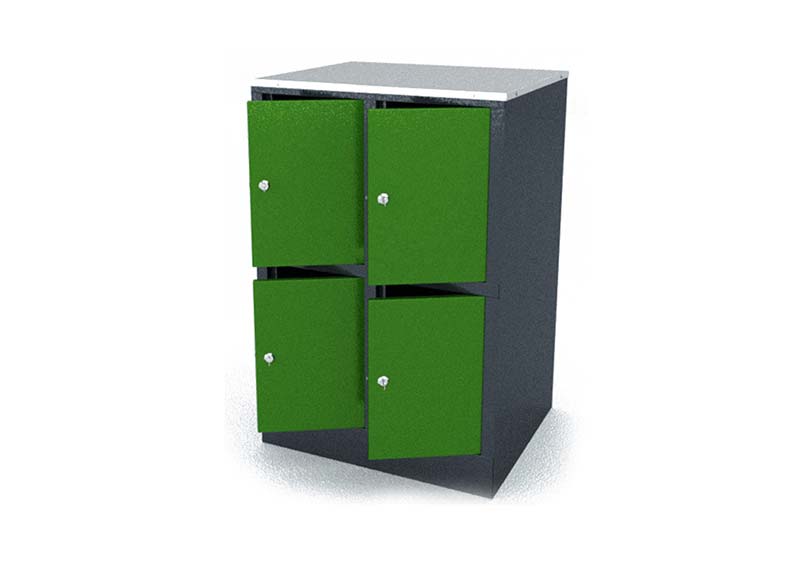 Металлическая сумочница предназначена для хранения сумок и личных вещей покупателей в магазине. Прочная, сварная конструкция выполнена из 4 отделов со сплошными дверками, комплектуется замками и ключами.