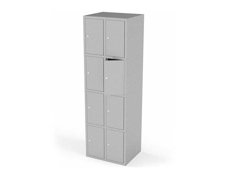 - Разборные шкафы. В таких моделях отдельные секции соединятся между собой путем скрепления. Они удобны в применении потому, что при необходимости в них можно легко увеличить количество ячеек без замены всей конструкции на новую.