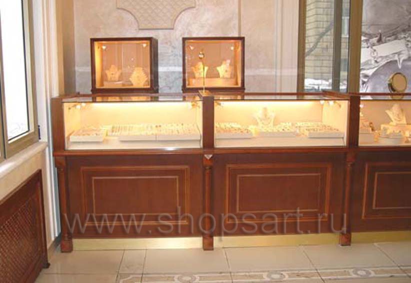 Всегда остается востребованным оборудование из массива дерева или с элементами массива дерева. За долгие годы работы на рынке изготовления торговой мебели на заказ, мы научились делать качественную и недорогую мебель с элементами из массива натурального дерева. Такая мебель всегда смотрится добротно и дорого. Чаще всего ее устанавливают в ювелирные магазины. Прилавки с массивными колоннами и коронами из карнизов в классическом столе украсят любой магазин. Для удешевления стоимости прилавка или витрины в основе изделия и частей, невидимых покупателю, используется недорогие стандартные листовые материалы высокого качества (немецкий ЛДСП), а для отделки мебели мы используем элементы из массива дерева с обработкой лаком, золотой или серебряной патиной. В отделке мы используем как готовые декоративные элементы итальянского и российского производства, так и части, изготовленные нашими краснодеревщиками. Для производства мы используем массив луба, бука или ясеня. Это осень прочный материал, устойчив к перепадам влажности окружающей среды, удобен в обработке. Из массива вытачиваются колонны, филенки, карнизы и много других декоративных элементов. Мебель тонируется и окрашивается в любой цвет. По требованиям торговых центров, при необходимости, мы делаем противопожарную сертифицированную пропитку изделий.