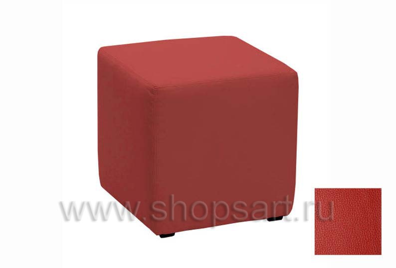 Пуфик кубической формы, красного цвета.