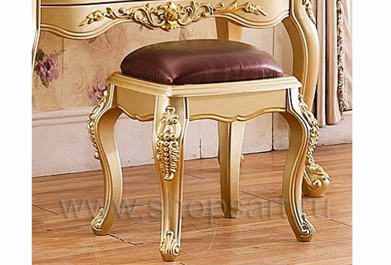 Классический стул с подлокотниками из массива дерева и обивкой кожзамом. Патинирован золотом.