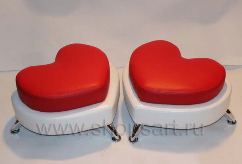 Банкетка “Сердце”, красно-белая, на ножках.