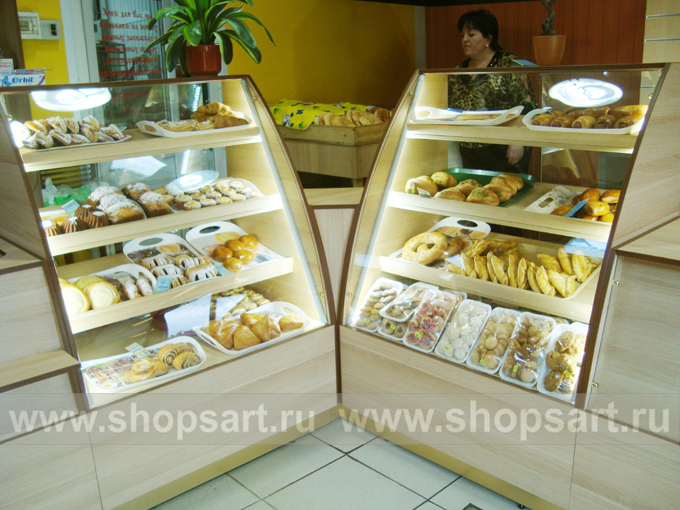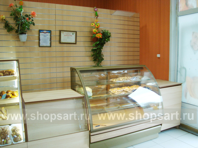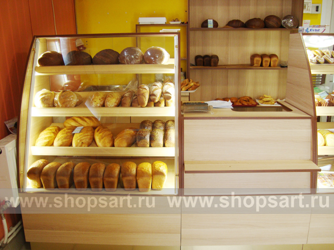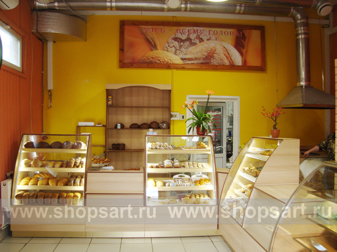 На этой странице Вы можете ознакомиться с фотографиями торгового оборудования в открытом магазине хлеба и кондитерских изделий, находящемся в Московской области. Произвела, поставила и установила в магазине торговую мебель: торговые стеллажи, торговые прилавки, торговые острова, торговые стойки, пристенные стеллажи, торговые шкафы и др. компания ООО «Искусство интерьеров»