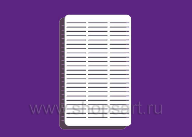Панели из матового оргстекла с перфорацией. Настенные панели комплектуется прозрачными, из оргстекла, крючками для демонстрации бижутерии. Панель устанавливается на стену при помощи дистанционных кронштейнов. При наличии в магазине колонн, подобные перфорированные панели можно установить на эти колонны, тем самым увеличив торговую площадь в магазине. Так же их можно сочетать с размещением зеркал. Разделение панели на две части позволяет разделять группы товаров.