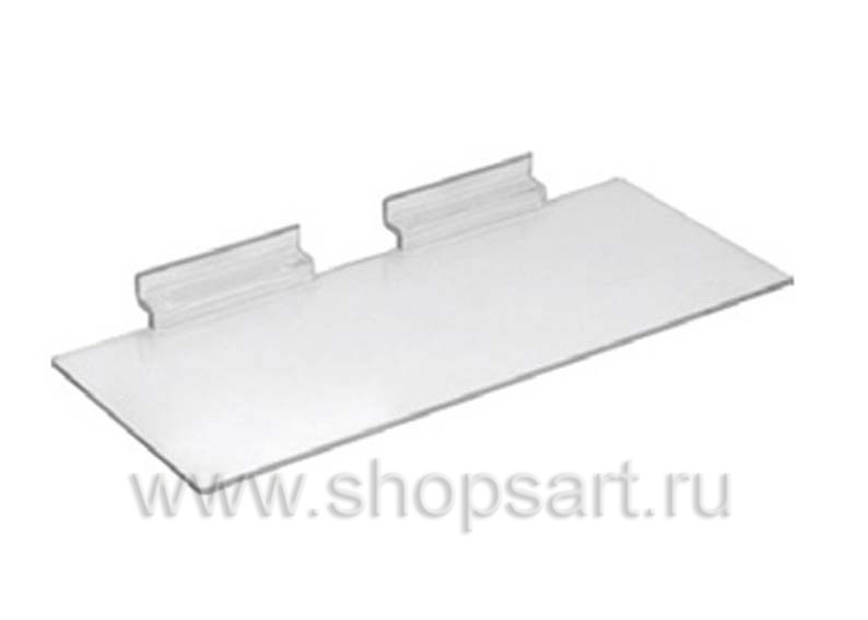 Полка прямоугольной формы, изготовлена из прозрачного акрила. Полка устанавливается на экономпанель или панель с перфорацией.