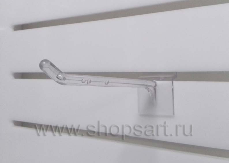 Радиусная полка изготовлена из прозрачного акрила. Полка устанавливается на экономпанель или панель с перфорацией. Данный вид полки не подходит к экономпанелям с алюминиевыми вставками.