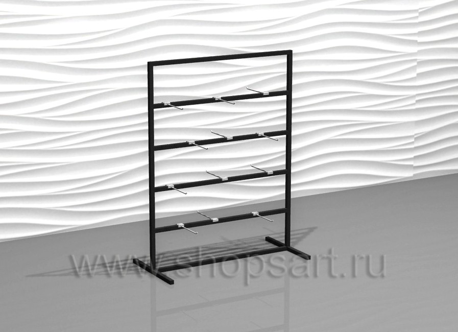 Островная, четырехсторонняя стойка используется для вывески одежды и выкладки на подиум сопутствующих товаров. Эта стойка создана, для хорошего обзора товара и удобного доступа к нему покупателям. Торговая стойка имеет в своей основе металлическую сварную квадратную трубу 25х25мм. с покрытием порошковой краской чёрного, матового цвета.Подробнее