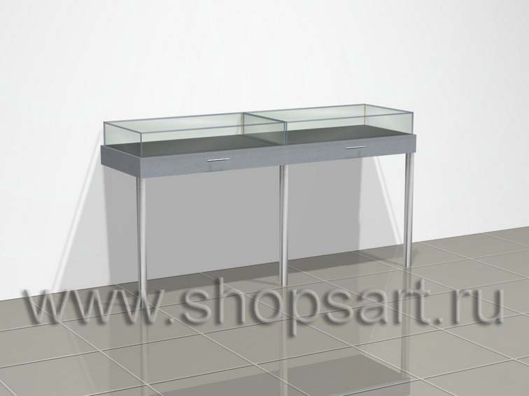 Прилавок для пистолетов и аксессуаров имеет выдвижные каретки с замками. В нижней части устанавливаются хромированные металлические опоры. Прилавки предназначены для установки возле окон с расположенными под ними радиаторами отопления. Прилавки визуально смотрятся очень легко и позволяют иметь доступ к радиаторам.