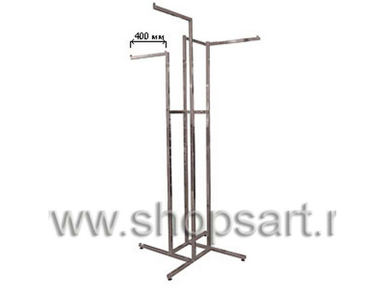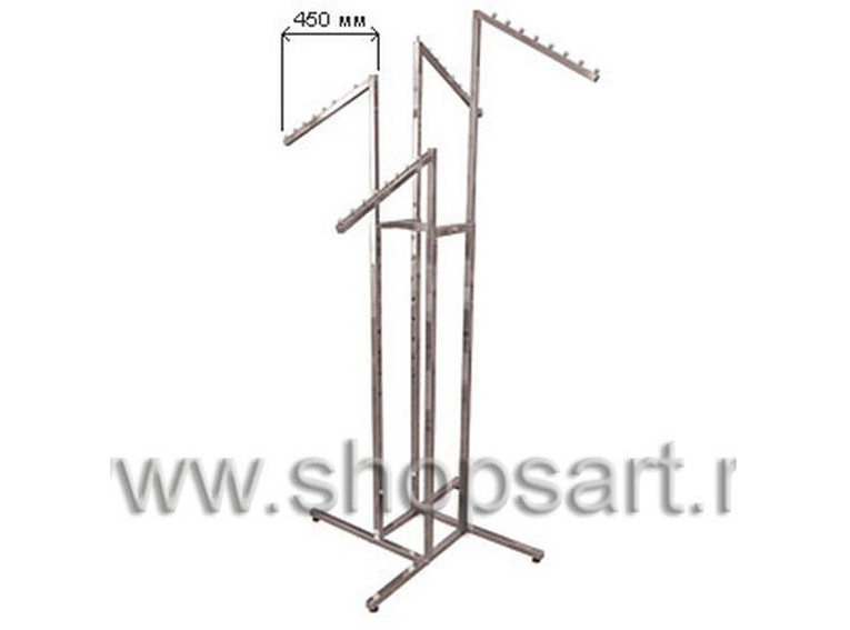 Описание: Вешало четырехстороннее, наклонное используется для демонстрации и продажи одежды для охоты и рыбалки.