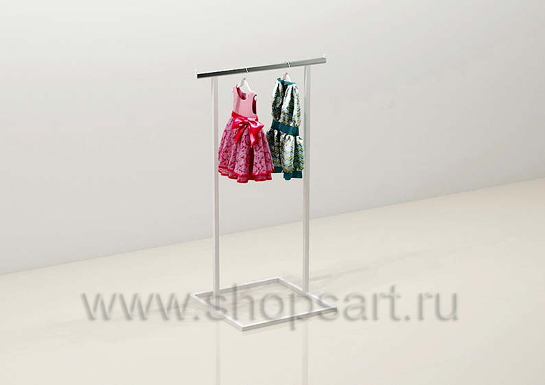 Островное вешало используется для демонстрации одежды, создано для хорошего обзора товара и удобного доступа к нему покупателей. Вешало компактное, легкое и удобное, подойдет для размещения в центре торгового зала детских магазинов небольшой площади. Торговое вешало имеет в своей основе металлическую конструкцию из сварной квадратной с порошковой окраской в белый матовый цвет. Сверху, в месте навески товара, устанавливается защитная накладка из нержавеющей стали для предохранения окрашенного металла от повреждений.