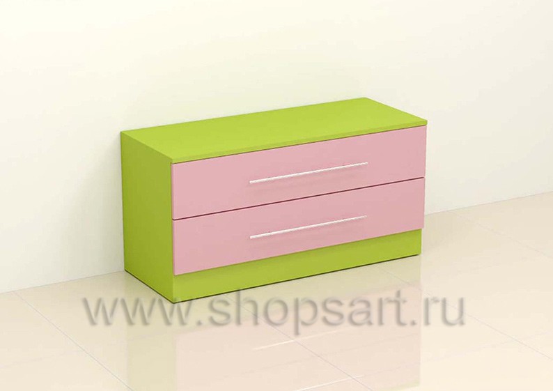 Накопитель с выдвижными ящиками предназначен для хранения и сортировки товара, оснащен кареткой на направляющих полного выдвижения. Изделие дополнительно устанавливается в пристенных торговых секциях или блоках стеллажей. Каркас изделия выполнен из матового ЛДСП 16 мм цвет «Зелёный лайм». Дверцы выдвижных ящиков выполнены из матового, розового ЛДСП 16 мм. Исполнение накопителя возможно в любом другом цвете ЛДСП.