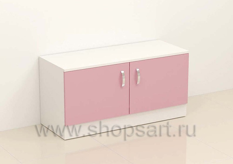 Накопитель для хранения товара с распашными дверками предназначен для оформления пристенных торговых конструкций в магазине. Каркас изделия выполнен из белого, матового ЛДСП 16 мм. Дверки накопителя выполнены из розового, матового ЛДСП 16 мм. Изделие может быть выполнено в любом, другом цвете материалов.